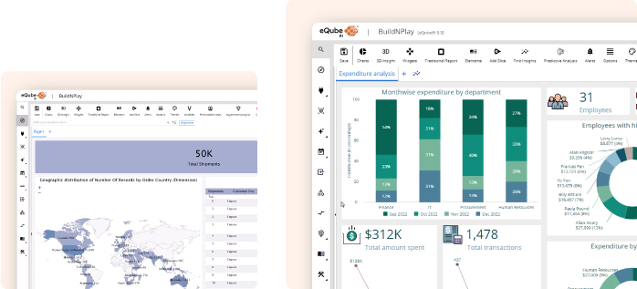 eQube®-BI is a modern and AI enabled Augmented Business Intelligence platform that democratizes analytics with governance. It empowers users across the organization to explore live, enterprise-wide data whenever they need it, while consistently enforcing the security and access rules of underlying enterprise applications.
